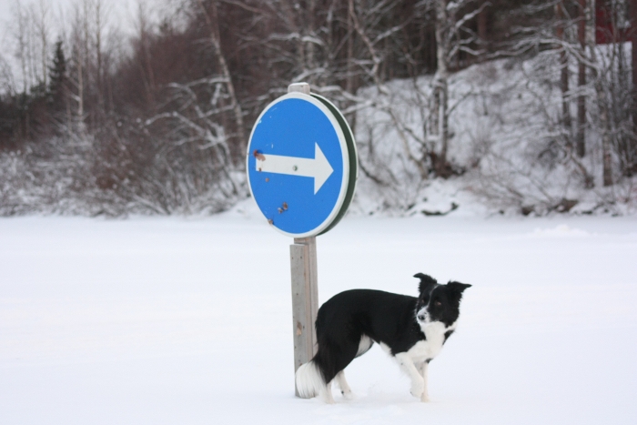 Jotakin hyötyä siitäkin että tuosta joen yli menee jäätie, on kunnon suuntamerkit. :D