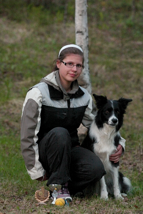 Tunnisteet: agilityTänään sitten lähdettiin Keminmaahan iltakisoihin. Tulin koulusta kotia, enkä jaksanut käyttää koiria kummemmin lenkiltä ja sitten lähtö. Tuntui vaan niiin hölmöltä lähtiä ilalla ajamaan aksakisoihin. Tuike oli yllättäen super energinen ja super kierroksilla kisapaikalla ja rata mielenkiintoinen. Melkein heti vedettiinkin kielto ekalla radalla ja loppu rata oli vähän sellaista naama punasena koiralle huutamista, että täälä, täälä, täälä. Mutta se otti kontaktit silti, kaikki! En olis ikinä uskonu. Tuike oli radalla ihan mielettömässä viereessä ja sen kuuntelu oli kyl todella lähellä nollaa. Varmaan tuhat kertaa oli ryntäämässä väärälle esteelle, mutta karjumalla sain sen aina takaisin. Eli vitoseksi se jäi ja sijoitus oli radalla 2.