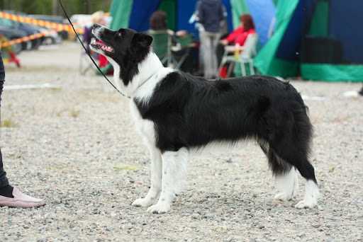 Lapikas-kehältä juoksin bc-kehälle, jossa oli nartut jo alkanut ja kohtapuolin alkamassa avoinluokka, jossa Tui oli. Tuike sai EH:n seuraavanlaisella arvostelulla: "4 years old. Good size and boned. Good headtype, pigment is loose on the lips. Well set ears. Good neck. Little weak topline. Good chest. Moves close behind, paddles infront, good sidegate but tailcarriage is high." Vapaasti suomennettuna: "4-vuotias. Hyvä koko ja luusto. Hyvä päätyyppi, ei pigmenttiä huulissa. Hyvin asettuneet korvat. Hyvä kaula. Hieman heikko selkä. Hyvä rintakehä. Liikkuu ashtaasti takaa, lavat edessä, hyvä sivuliike mutta hännän kanto on korkea." Oikein kiva arvostelu siis Tuikelle. (: Kiitos Annalle kun esitit Tuiken!