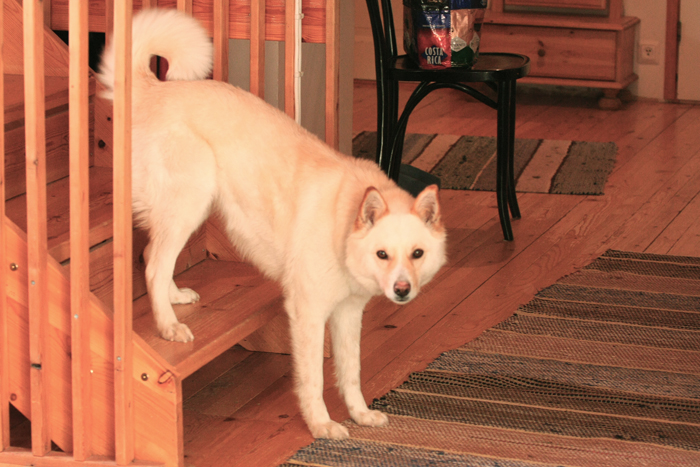 Tunnisteet: kuvahaasteKuukauden koirakuvahaasteen haasteena oli kuvata koiran sisäaktivointi juttuja, koska helmikuu oli niin jäätävän kylmä, ettei ulkona lenkkeily oikein onnistunut. Tuike treenaili helmikuussa lähinnä tokojuttuja ja lämpimässä hallissa myös agilityä. Yhden uuden tempunkin se kyllä opetteli, takaperin minun kiertämisen. Pyrrikin pääsi opettelemaan pitkästä aikaa uusia temppuja. Pyrrin kanssa työn alle otettiin peruuttaminen minun edessä ja seuratessa. Ja koska takapään käyttö oli ihan hukassa rupesin sillekkin opettamaan takajalkojen nostamista ylöspäin. Tarkoitus olisi Pyrrinkin kanssa päästä vielä siihen asti, että se nostaa ne seinää vasten. Haasteenseen osallistun nyt kuvalla missä näkyy tämän hetkinen tilanne tuon tempun koulutuksessa.