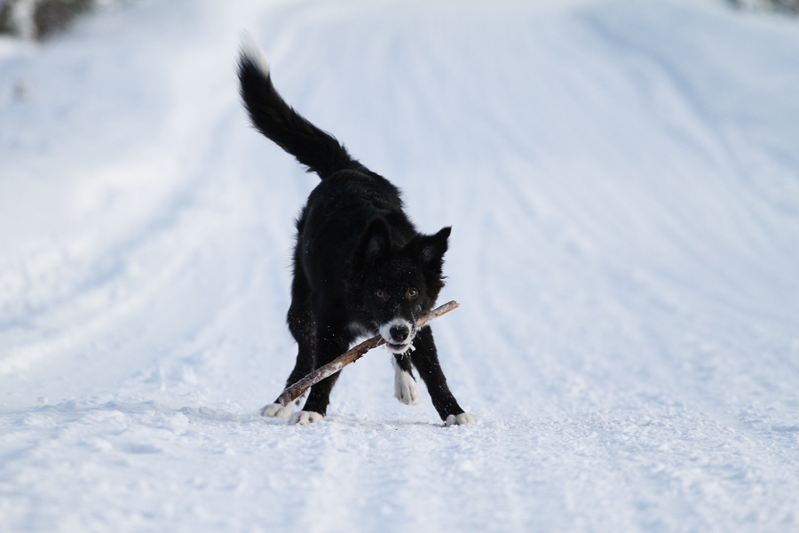 Vilppi on treenaillut lähinnä kotona. Ennen joulua tein sen kanssa tosi vähän tokoa ainakin parin viikon ajan. Mutta nyt olen taas ottanut itseäni niskasta kiinni ja on treenattu tavoitteelisemmin. Ruutua on pitänyt vähän muistutella, mutta muuten osaa edelleen hyvin kaikki mitä on opetettukkin. Uutena asiana mukaan on tullut noutotreenit, jotka lähti menemään aluksi niin huonosti. Jotenkin otin ite asiasta stressiä ja Vilpin asenne oli sitten ihan plääh koko juttuun. Stressasin vissiin ite sitä vielä enemmän, joten koko homma rupes kusemaan niin paljon, että laitoin asian hetkeksi jäihin. Ongelman purku alkoi sitten keskiviikkona ohjatuissa tokoissa (kilpailevien treeneissä, kyllähän se vii menee jo hyvin kilpailevasta ;D). Kirsi neuvoi mua ongelman kanssa ja väänsi asioita rautalangasta. Yhdessä kerrassa Vilppi edistyikin enemmän kuin olin ite saanut edistymään viikossa. Nyt ollaan kotona ilman Kirsin valvovaa silmääkin jo saatu merkittävää parannusta asiassa aikaan. Joten ehkä Vilppikin vielä oppii noutamaan. :)