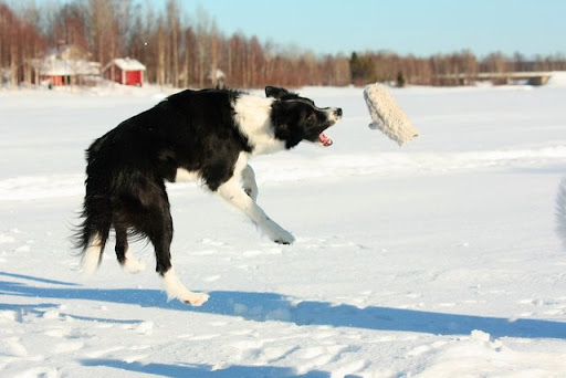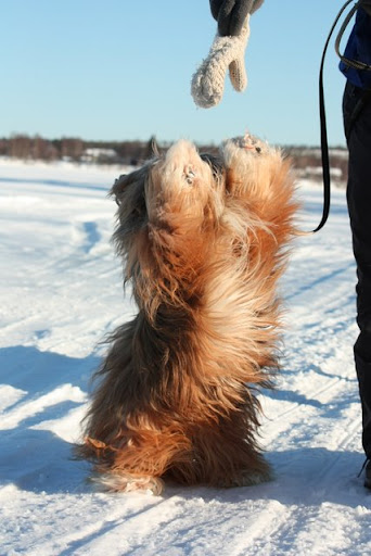 Hiihtolomaviikon aktiviteetit on jatkuneet. Keskiviikkona kaverin kanssa pidemmällä lenkillä jäällä ja Tuike ninjaili hieman lapasen perässä. :D Eilen sitten käytiin treenaamassa tokoa med Emilia & Roope ja Sara & Hukka. Tuikelle tehtiin evl-koe. Paikkalla oloissa oli nyt istumisessa Hukka mukana ja paikkamakuussa kaikki kolme koiraa teki 3 minsan makuun. Erinomaiset suoritukset Tuikelle molemmissa. Muutenkin kaikki liikkeet meni hyvin paitsi ruutu ja ohjattu kusi kunnolla. Kaukokäskyissä jouduin myös yhden ylimääräisen käskyn käyttämään. Mutta pisteitä annettiin taas Tuikelle Emilian ja Saran toimesta ja yhteensä pisteitä tuli 222,5 ja tuo olis kai EVL3. Perään tehtiin sitten Emilialle ja Roopellekkin koemainen treeni ja sain toimia liikkurina osaksi. :D "Kokeiden" jälkeen, tein Tuiken kanssa vielä ohjattua ja ruutua liikkurin kanssa kisamaisesti ja vammas edelleen, mutta pikkuhiljaa alkoi sujumaan.
